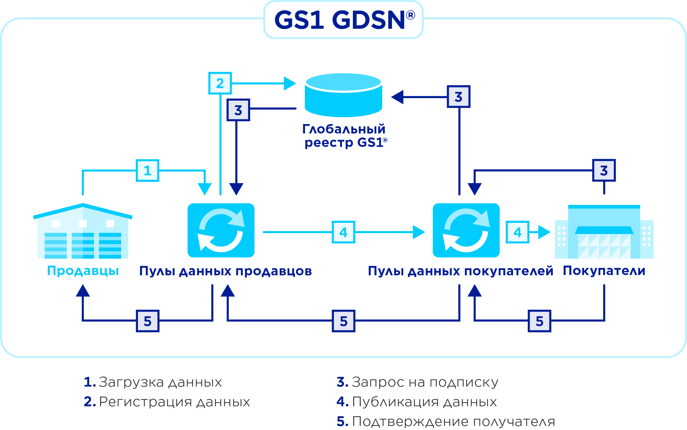 GDSN — The Global Data Synchronization Network includes the GS1 Global Registry and certified commodity catalogs, as well as the Data Quality Assurance System and the GS1 Global Product Classifier (GS1 GPC). These components form an environment that effectively ensures the secure and continuous synchronization of accurate and reliable commodity data.