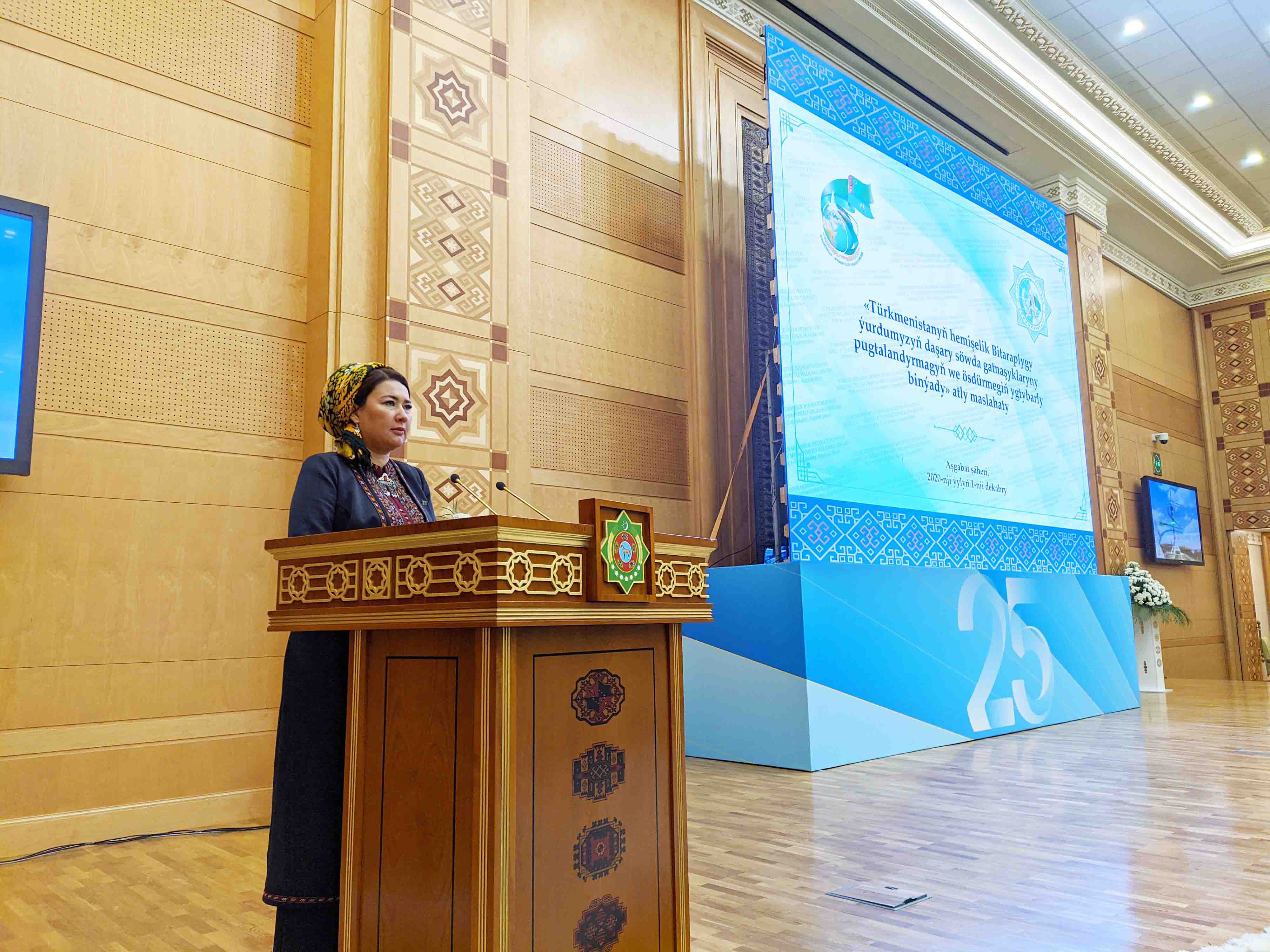 В рамках тематической выставки в большом зале Торгово-промышленной палаты состоялась конференция «Постоянный нейтралитет Туркменистана - надёжная основа укрепления и развития внешнеэкономических отношений», организованная  Министерством торговли и внешнеэкономических связей.