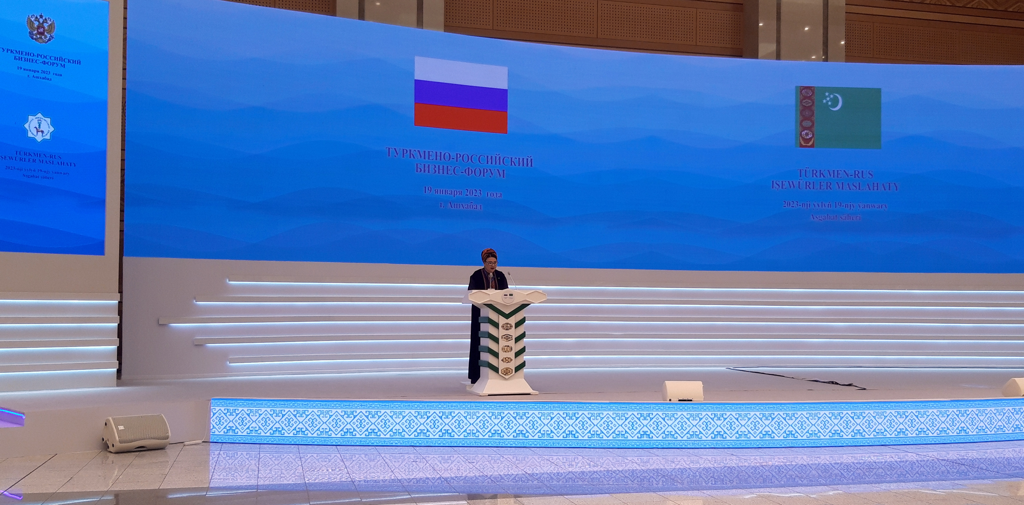 В туркменской столице 19-20 января состоялся туркмено-российский бизнес-форум, в пленарном заседании которого приняла участие и выступила с докладом председатель Национальной организации Туркменистана по штрих-кодам Айкамар Мяликгулыева.